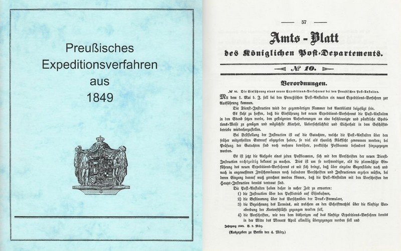 Nachdruck der Verordnung von 1849 über die Einführung eines neuen Expeditionsverfahrens bei den Preußischen Post-Anstalten, 86 Seiten